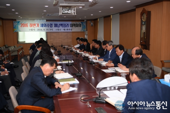 경북 청도군청 1회의실에서 19일 오전 실.과장이 전원 참석한 가운데 세외수입체납액 징수방안과 관련해 대책 회의를 하고 있다.(사진제공=청도군청) 경북 청도군(군수 이승율)은 19일부터 오는 12월10일까지 하반기 지방세외수입 체납액 일제정리기간으로... 2016-09-19