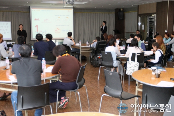 19일 충남 천안 나사렛대학교에서 SK이노베이션 인사담당자가 하반기 채용설명회를 진행하고 있다.(사진제공=나사렛대학교) SK그룹의 올해 하반기 장애인 채용 설명회가 19일 나사렛대학교에서 열렸다. 재학생과 졸업생 등 취업준비생 100여명이 참여... 2016-09-19