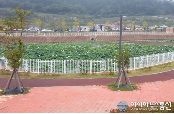 목포시 용해2지구에 설치된 백련제에 연꽃이 만개해 인근 주민들의 운동코스로 각광을 받고 있다.(사진제공=목포시청) 전남 목포시 용해2지구 백련근린공원 내 위치한 백련저류지의 연꽃단지 조성 계획이 결실을 맺었다. 시는 백련저류지 바닥에 쌓인 ... 2016-09-19