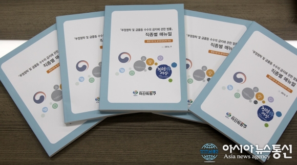 창원시 마산회원구가 ‘부정청탁 및 금품 등 수수 금지에 관한 법률’ 시행을 앞두고 직원들에게 배부한 청탁금지법 매뉴얼.(사진제공=창원시청) 경남 창원시 마산회원구(구청장 조철현)는 ‘부정청탁 및 금품 등 수수 금지에 관한 법률’ 시... 2016-09-19