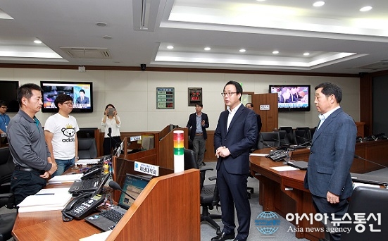 정기열 의장은 재난안전대책본부를 방문해 직원들을 격려하고 도민들을 위해 안전관리에 최선을 다해 줄 것을 당부했다.(사진제공=경기도의회) 경기도의회 정기열 의장(더불어민주당, 안양4)은 18일 오전 경기도재난안전대책본부를 방문해 지난 12일 경... 2016-09-19