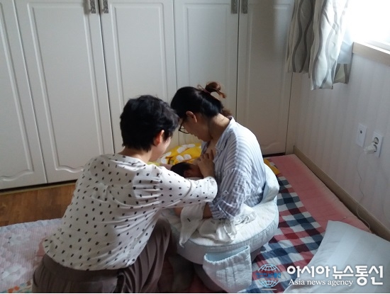 19일 충북 영동군은 영동군보건소가 시행하고 있는 가정산후조리 사업이 출산부들에게 큰 인기를 얻고 있다고 밝혔다. 사진은 한 출산부가 건강관리사의 도움을 받아 모유 수유를 하고 있는 장면.(사진제공=영동군청) 충북 영동군보건소가 시행하고 있는... 2016-09-19