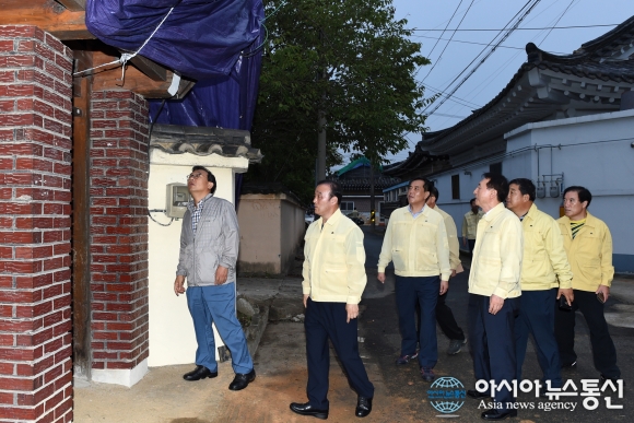 18일 최양식 경주시장(가운데)이 홍윤식 행자부 장관에게 기와 보수 등 국비지원을 건의 하고 있다.(사진제공=경주시청) 18일 홍윤식 행정자치부 장관이 경주를 방문해 대책회의를 갖고, 9.12 지진피해 현장을 점검했다. 홍 장관은 사상초유의 지진과 태... 2016-09-18