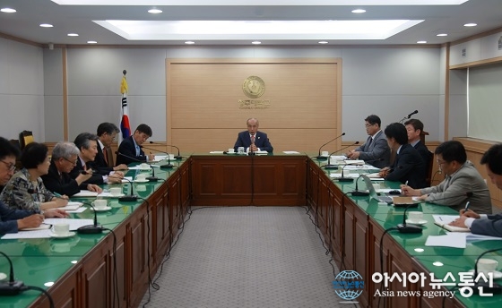 지난 13일 충북 청주대학교 정성봉 총장(가운데)이 첫 교무위원 회의를 주재한 자리에서 모두발언을 하고 있다.(사진제공=청주대학교) 충북 청주대학교가 재정지원 제한대학 해제와 2주기 대학구조개혁평가에서 좋은 결과를 얻기 위해 혁신적인 학사구조... 2016-09-18