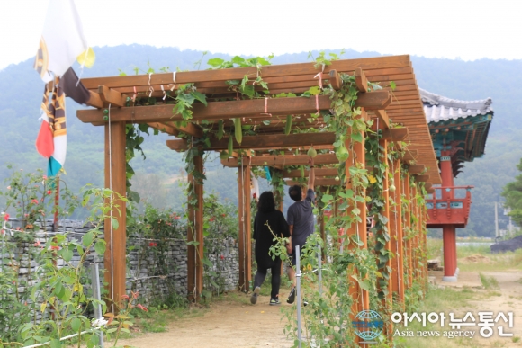 충북 단양군 온달동굴 방향에 조성된 조롱박과 수세미로 만든 터널.(사진제공=단양군청) 충북 단양관광관리공단이 가을철 관광객 유치를 위한 홍보에 총력을 기울이고 있다. 18일 공단에 따르면 올해 여름 성수기 다리안관광지 등 공단 관리시설을 방... 2016-09-18