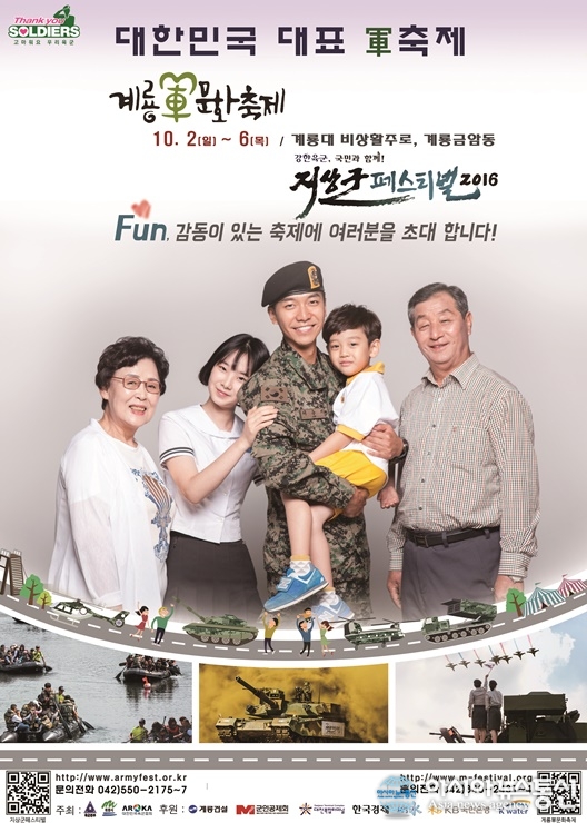 ‘2016계룡군문화축제-지상군페스티벌’ 포스터.(사진제공=계룡시청) 계룡시가 2016계룡군문화축제 프로그램 일환으로 진행하는 ‘아빠와 함께하는 1박 2일 병영체험’ 참가자를 모집한다. (재)계룡군화발전재단은 오는 10월 2일부터 3일까지... 2016-09-17