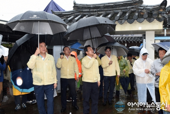 17일 박인용 국민안전처 장관이 경주시 황남동 사정경로당 주변 지진 피해현장을 점검하고 있다.(사진제공=경북도청) 경북도는 경주 지진피해에 대해 정부차원 전폭 지원과 빠른 회복 위해 특별재난지역 선포해 줄 것을 정부에 요청했다. 17일 박인용 ... 2016-09-18