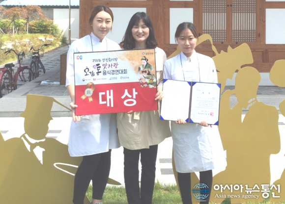 '2016 강진읍시장 오감통 맛자랑 음식경연대회'에서 대상을 수상한 대구가톨릭대 윤가영 학생, 안상희 지도 교수, 이효설 학생(사진 왼쪽부터).(사진제공=대구가톨릭대) 대구가톨릭대학교는 외식산업학전공 학생들이 최근 열린 '2016 강진읍시장 오감통 맛... 2016-09-16