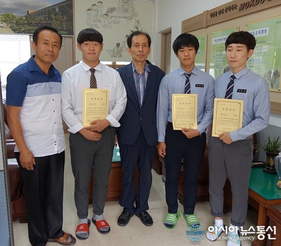 16일 충북 괴산 목도고등학교(교장 홍지표.가운데)는 관내에 사업장을 둔 (주)동영이엔지(대표 김병준.맨왼쪽)가 장학기금 100만원을 기탁해 3명의 학생에게 전달했다고 밝혔다.(사진제공=충북도교육청) 충북 괴산군 불정면 목도고등학교(교장 홍지표)는 ... 2016-09-16