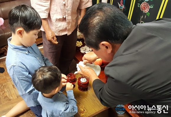 15일 대전유성 추석을 맞아 조상에 예를 지키며 차례를 지내고 있는 두어린이 손이 한가위추석의 아름다운 모습으로 보여지고 있다.(사진제공=손정은님) 2016-09-15