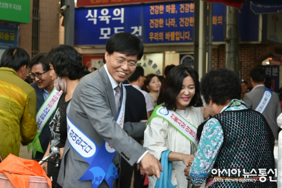 14일 새누리당 최교일 의원(경북 영주·문경·예천)과 부인 이홍채씨(오른쪽)가 추석 연휴를 맞아 영주·문경·예천의 5일장 등 전통시장을 돌며 민심을 듣고 있다.(사진제공=최교일 국회의원 사무실) 새누리당 최교일 의원(경북 영주·... 2016-09-14