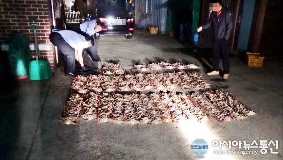 14일 오전 경북 포항해경 요원들이 구룡포읍 하정3리 항에서 암컷대게 불법 포획사범을 현장 검거하고 증거물인 암컷대게를 압수하고 있다.(사진제공=포항해경) 암컷대게 불법 포획사범이 현장에서 검거됐다. 포항해양경비안전서(서장 최정환 포항해... 2016-09-14