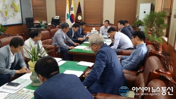 14일 경기 평택시의회(의장 김윤태) 의장단이 시 집행부와 의회 의장실에서 국방부의 ‘수원 군 공항이전 예비이전후보지 선정’을 위한 관계 지자체 회의 개최 공문 통보와 관련 대책회의를 개최했다.(사진제공=평택시의회) 경기 평택시의회(의장 ... 2016-09-14