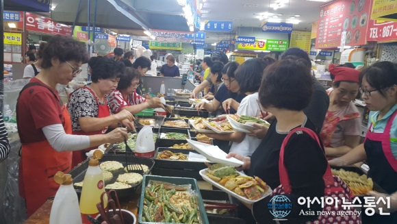 14일 대전시 유성구 전민동 한 상가지하의 전집들이 명절을 보내기위해 전을 사려는 주민들과 상인들이 어울려 북새통을 이루고 있다./아시아뉴스통신=김형중 기자. 2016-09-14