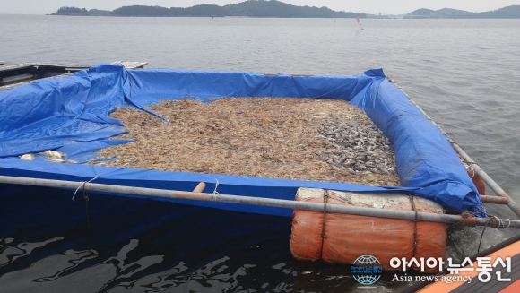 지난달 고수온으로 우럭 수만마리가 집단 폐사한 충남 서산시 부석면 창리 가두리 양식장./아시아뉴스통신 DB 충남도가 지난달 고수온 영향으로 피해를 입은 천수만 해역 일원 62개 양식어가에 대해 재해복구비 27억8000만원을 투입, 본격적인 1차 복... 2016-09-13