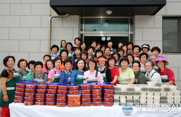 생활개선태안군연합회 회원들이 12일 ‘사랑의 송편 및 김장 담그기’ 행사를 갖고 생활이 어려운 이웃들에게 전달 될 송편과 김치 앞에서 기념촬영하고 있다. (사진제공=태안군청) 추석을 앞두고 충남 태안지역 곳곳에서 온정의 손길이 이어지고 ... 2016-09-13