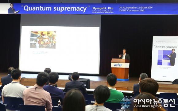 DGIST는 12일 오후 대학본부 컨벤션홀에서 영국 임페리얼리지런던 김명식 교수를 초청해 제23회 Distinguished Lecture Series를 개최하고 있다.(사진제공=DGIST) DGIST(총장 신성철)는 12일 오후 대학본부 컨벤션홀에서 2016년 호암과학상의 주인공인 영국 임페리얼칼리... 2016-09-12