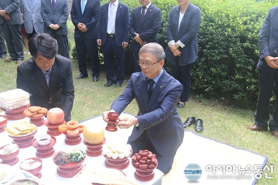 12일 윤여표 총장(맨앞 오른쪽)을 비롯한 충북대학교 구성원들이 교육독지가의 묘소를 찾아 차례를 지내고 있다.(사진제공=충북대학교) 충북대학교(총장 윤여표)는 12일 추석 명절을 앞두고 평생 근검절약을 실천하며 모은 전 재산을 장학금으로 기탁한 ... 2016-09-12