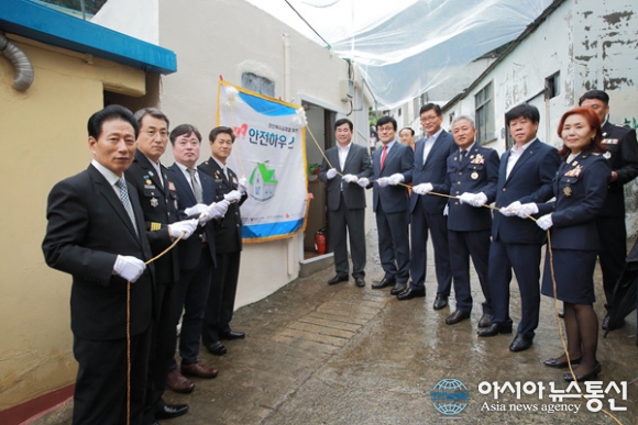 12일 오후 1시 30분 부산 남구 문현동 도모 할머니의 집에서 119안전하우스 입주식이 개최되고 있다.(사진제공=부산소방본부) 부산지역 소방관과 의용소방대원들이 모은 기금 등으로 저소득층 주택을 리모델링한 ‘119안전하우스’의 입주식이 ... 2016-09-12