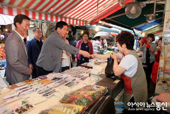 12일 강호동 진해구청장이 진해중앙시장에서 장을 보고 있다.(사진제공=창원시청) 경남 창원시 진해구(구청장 강호동)는 민족고유의 명절인 추석을 맞아 진해중앙시장 등 지역 전통시장에서 장보기운동을 전개하고 있다. 12일 강호동 구청장을 비롯한 ... 2016-09-12