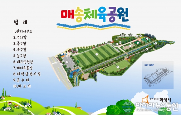 매송면체육공원 종합안내도.(사진제공=화성시청) 경기 화성시 매송면에 주민들이 다양하게 사용할 수 있는 체육공원이 조성됐다. 화성시는 28일 매송면 원평리 50-3번지 다목적구장에서 '매송체육공원' 준공식을 갖는다. 총 사업비 73억 원이... 2015-11-26