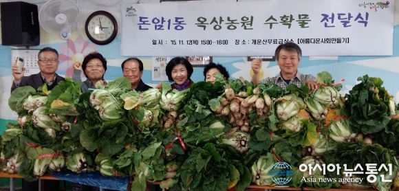 서울 성북구 돈암1동 주민자치위원회는 주민센터 옥상농원에서 무럭무럭 자란 배추, 무 등 200여포기의 수확물을 개운산 무료급식소에 전달했다.(사진제공=성북구청) 성북구(구청장 김영배) 돈암1동이 나눔과 봉사로 추운겨울에 따뜻한 온기를 불어넣... 2015-11-26