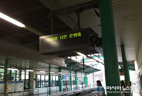 26일 지하철 4호선 미야역 인근 선로 화재로 열차가 지연되고 있다./아시아뉴스통신=신항섭 기자 서울지하철 1~4호선을 운영하는 서울메트로(사장 이정원)는 26일 오전 1시56분경 미아역 인근 선로에서 발생한 화재로 일부 구간(성신여대입구역~당고개역... 2015-11-26