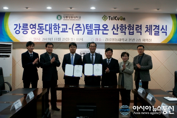 25일 강릉영동대학교(총장 정창덕)와 ㈜텔큐온(대표이사 김승훈)은 강릉영동대학교 소회의실에서 핀테크 보안 솔루션을 활용한 산학협약을 체결하고 있다.(사진제공=강릉영동대학교) 강릉영동대학교(총장 정창덕)와 ㈜텔큐온(대표이사 김승훈)은 25... 2015-11-25