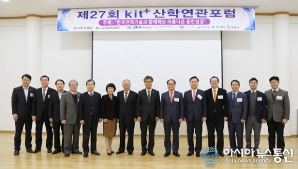 25일 구미 금오공대 청운관에서 열린 박구원 한국전력기술 사장 초청 '한국전력기술과 함께하는 아름다운 동반성장' 주제 특강에 참석한 김영식 총장, 박의식 구미부시장 등 내빈들이 기념사진을 찍고 있다.(사진제공=금오공대) 금오공과대학... 2015-11-25