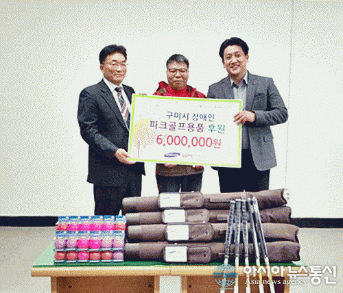 24일 경북 구미시 관계자가 시민운동장에서 삼성전자 구미 스마트시티가 후원한 경기용품을 장애인골프협회에 전달하고 있다.(사진제공=구미시청) 경북 구미시(시장 남유진)는 24일 시민운동장에서 삼성전자 구미 스마트시티가 후원한 경기용품을 장... 2015-11-25