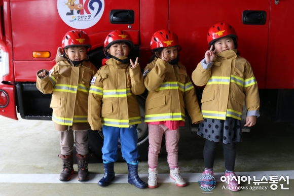 25일 강원 고성소방서(서장 남궁규)는 고성소방서에서 대진어린이집 및 고은어린이집 원생 30명을 대상으로 소방안전 체험교실을 실시하고 있다.(사진제공=고성소방서) 2015-11-25