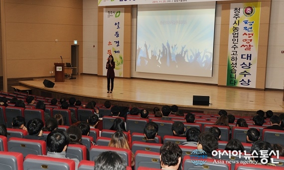 25일 충북 청주시가 한국서비스교육센터 이지영 강사를 초청해 농업기술센터 청심관에서 직원 친절교육을 했다.(사진제공=청주시청) 충북 청주시가 25일 전문가를 초청해 청주시농업기술센터 청심관에서 시 산하 직원 450명을 대상으로 ‘친절1등 ... 2015-11-25