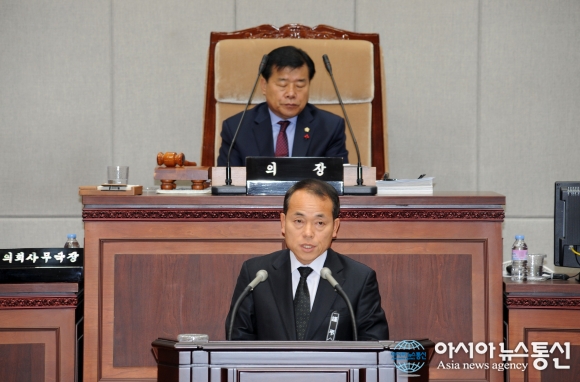 김윤식 경기 시흥시장이 시정 연설을 하고있다.(사진제공=시흥시청) 경기 시흥시(시장 김윤식)가 내년도 세입추계 결과 일반회계 예산을 6천139억 규모로 편성했다. 올해 추경예산을 포함한 7333억원에 비해 1194억원이 줄어든 수치다. 시는 경기침체 등... 2015-11-25