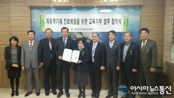 25일 경남 의령교육지원청(교육장 김영애)이 경남과학기술대학교와 자유학기제 진로체험지원을 위한 교육기부 업무협약을 체결한 후 기념촬영을 하고 있다.(사진제공=의령교육지원청) 경남 의령교육지원청(교육장 김영애)은 25일 경남과학기술대학교와 ... 2015-11-25