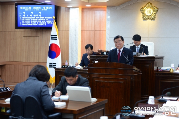 25일 홍성군의회 본회의장에서 열린 '제232회 군의회 제2차 정례회'에서 김석환 홍성군수가 시정연설을 하고 있다.(사진제공=홍성군청) "2016년을 홍성군 발전의 초석을 쌓는 원년으로 삼겠다" 25일 오전 10시 군의회 본회의장에서 열린 ... 2015-11-25