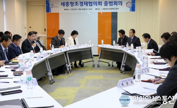 25일 세종창조경제혁신센터에서 '세종창조경제협의회' 출범회의를 개최했다.(사진제공=세종시청) 25일 세종창조경제협의회가 공식 출범했다. 세종창조경제협의회는 한경호 세종시 행정부시장과 세종창조경제혁신센터 창업대사인 김치봉 콜... 2015-11-25