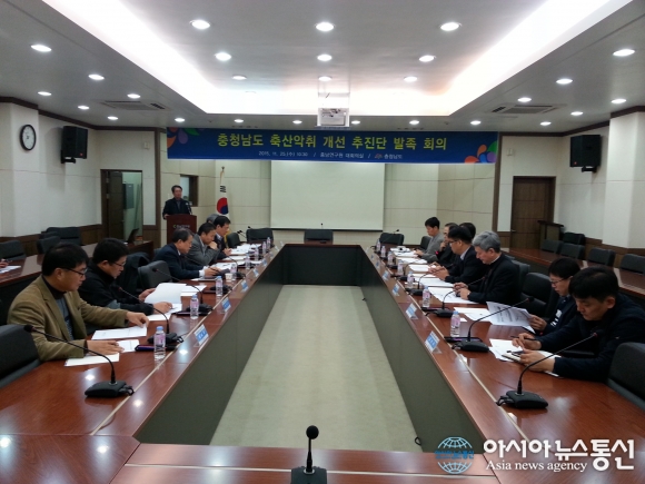 25일 충남연구원에서 축사악취 개선 추진단이 발족회의를 가졌다.(사진제공=충남도청) 충남도 내 축산시설 악취 개선을 이끌게 될 민·관 기구가 닻을 올렸다. 도는 25일 충남연구원 대회의실에서 ‘축사 악취 개선 추진단’이 발족회의를... 2015-11-25