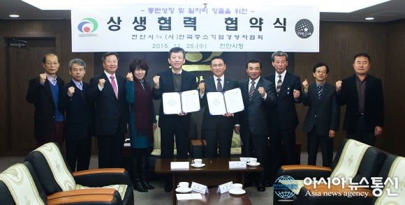 충남 천안시와 한국중소기업경영자협회는 25일 청년들의 성공적인 사회진출 지원과 우수 중소기업의 육성을 위한 업무협약(MOU)을 체결했다.(사진제공=천안시청) 충남 천안시는 한국중소기업경영자협회와 함께 청년들의 성공적인 사회진출 지원과 우... 2015-11-25