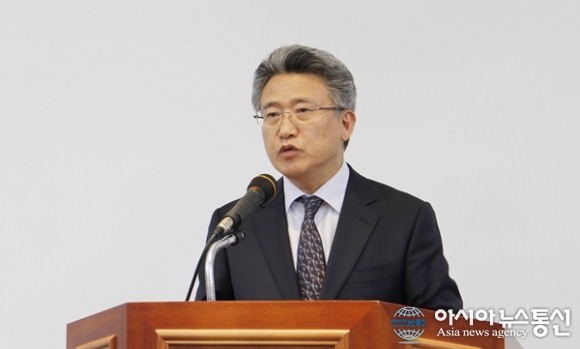 25일 오후 주기재 한국하천호수학회장이 경북 상주 국립낙동강생물자원관에서 열리는 '제1회 담수생물 다양성과 활용 국제심포지엄'에서 축사를 하고 있다./아시아뉴스통신=김철희 기자 2015-11-25