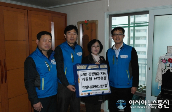25일 한정필 창원시설공단노조위원장 등이 한 탈북이주민 가정에서 천주교마산교구 민족화해위원회 관계자를 통해 난방용품을 전달하고 있다.(사진제공=창원시설공단) 경남 창원시설공단 노동조합(위원장 한정필)은 25일 지역에 거주하는 탈북 이주... 2015-11-25