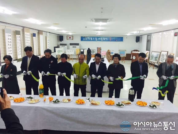 24일 작가와 교수, 주민들이 참석한 가운데 초동고을 미술회전 테이프 컷팅식을 하고 있다.(사진제공=초동면사무소) 경남 밀양시 초동면사무소에서 '꿈 넘어 꿈'이라는 주제로 제14회 초동고을 미술회전이 열리고 있다. 밀양시 초동고을 미술... 2015-11-25