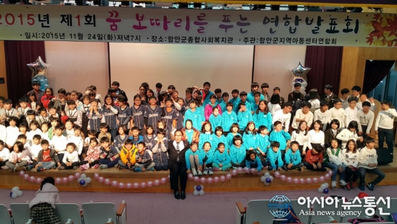 함안군지역아동센터 제1회 연합발표회 장면,(사진제공=함안군청) 경남 함안군은 24일 오후 7시 칠원읍 종합사회복지관에서 열방지역아동센터 등 5개 기관이 주최하고 함안군지역아동센터연합회가 주관한 ‘2015 함안군 지역아동센터 꿈 보따리를 푸는 ... 2015-11-25