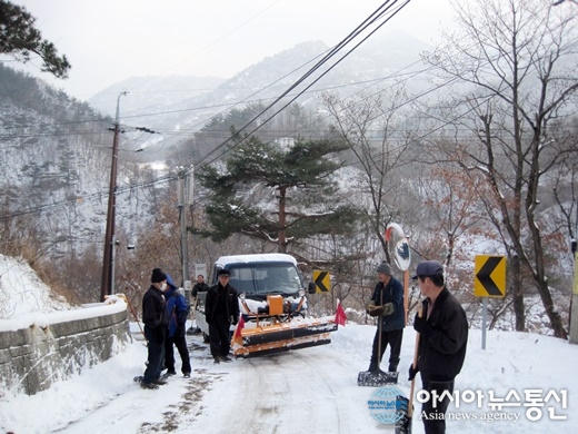 지난해 충북 단양군 동절기 제설모습.(사진제공=단양군청) 충북 단양군이 다음해 3월15일까지 겨울철 제설대책 중점 추진기간으로 정하고 제설대책 수립과 유관기관 협약 등 사전대비 태세에 돌입했다. 25일 군에 따르면 지역 군도 12개(104.4㎞)와 농어... 2015-11-25