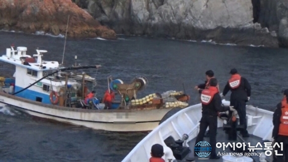 경남 통영시 욕지면 갈도 인근 해상에서 기관고장 어선을 통영해양경비안전서 경비정이 출동해 구조하고 있다./아시아뉴스통신 DB 경남 통영해양경비안전서는 25일 126건의 해상안전 저해범죄를 적발했다고 밝혔다. 해경은 지난 4월부터 10월까지 7개... 2015-11-25