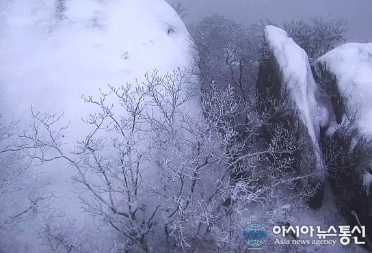 25일 충북 보은 속리산 고지대에 첫눈이 내린 가운데 문장대 정상부근에 눈꽃이 활짝 펴 장관을 이루고 있다.(사진제공=속리산국립공원사무소) 25일 오전 충북 보은 속리산국립공원 내 문장대와 천왕봉 등 고지대에 첫 눈이 내렸다. 속리산국립공원사... 2015-11-25