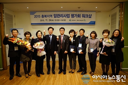 24일 충북 청주시에서 충북지역 암관리사업 평가대회·시상식이 열린 가운데 제천시보건소가 최우수상을 받고 관계자들이 기념촬영을 하고 있다.(사진제공=제천시청) 충북 청주시에서 24일 충북지역 암관리사업 평가대회·시상식이 열린 가운... 2015-11-25