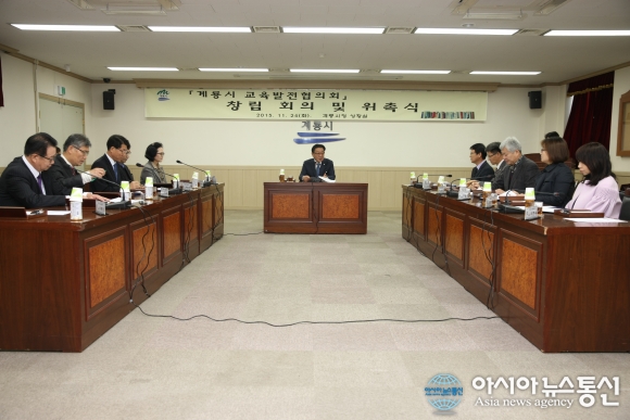 계룡시(시장 최홍묵)는 24일 상황실에서“계룡시 교육발전협의회”창립회의 및 위촉식을 개최했다.(사진제공=계룡시청) 충남 계룡시(시장 최홍묵)는 24일 상황실에서 “계룡시 교육발전협의회”창립회의 및 위촉식을 개최했다. 이날 회의... 2015-11-25