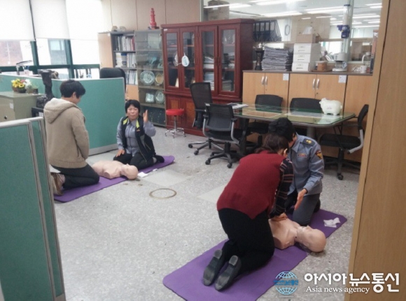 25일 경기 시흥시가 전 직원을 대상으로 ‘4분의 기적’ 전 직원 심폐소생술 교육을 실시한다.(사진제공=시흥시청) 경기 시흥시가 전 직원을 대상으로 ‘4분의 기적’ 전 직원 심폐소생술 교육을 실시한다. 시청 내 직원을 대상으로 사무실에... 2015-11-25