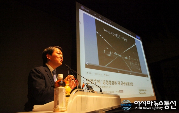24일 오후 경남대학교 한마미래관 심연홀에서 안철수 국회의원이 ‘청년 일자리 창출과 공정성장론’이라는 주제로 특강을 하고 있다.(사진제공=경남대) 경남대학교(총장 박재규)는 24일 오후 4시30분 한마미래관 심연홀에서 안철수 국회의원을 ... 2015-11-25