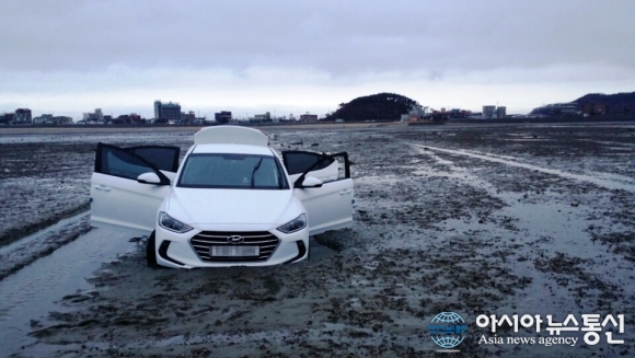 25일 오전 12시 50분쯤 화성시 제부도 남동쪽 약 300m 갯벌서 승용차 1대 침수...